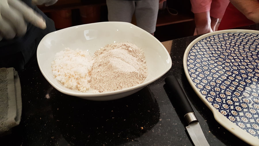 • Frische Kokosraspel und Hirsemehl zu gleichen Teilen