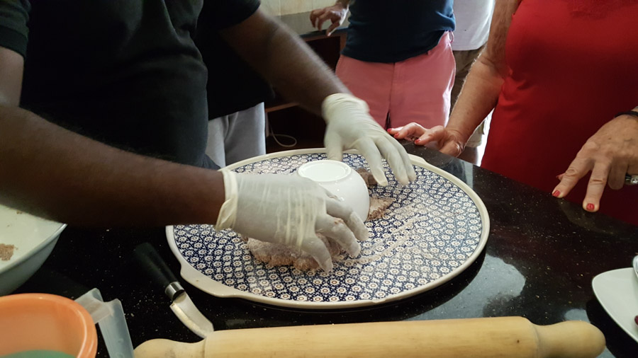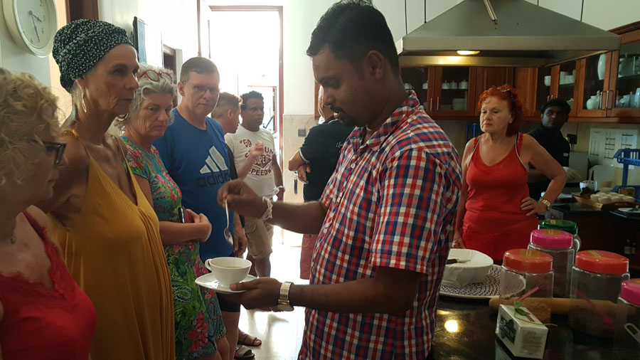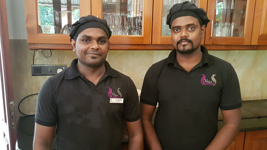 Zum Frühstück gibt es in der Villa Raphael, nebst Früchten, einer Suppe und weiteren Zutaten, auch immer Kokos-Rotis. Sie sind äusserst beliebt und an der Koch-Vorführung erfahren die Gäste nun auch wie sie diese einfach selbst zubereiten können.